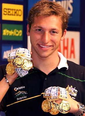 But despite all the fame and success he still remains very modest. A few months before the Sydney Olympics 2000, he was in a television studio waiting room with Shane Gould, one of Australia's greatest swimmers. She was showing him her Olympic medals and, noting his gaze, told him, "You'll have a bunch of your own soon." Thorpe replied, "I'd be happy with one."